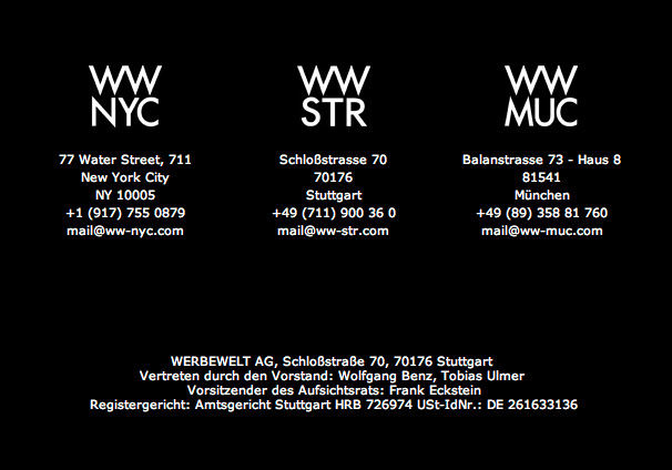 Ich freue mich sehr, auf bisher nicht absehbare Zeit ein Teil des Teams von WW Stuttgart sein zu dürfen und ausgesprochen schöne Projekte im Bereich Corporate Design zu betreuen.
